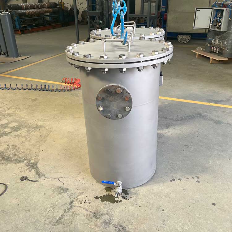 籃式過濾器主要由接管、筒體、濾籃、法蘭、法蘭蓋及緊固件等組成。當流體進入有一定規格的濾網的濾桶后,其雜質被阻擋,而清潔的濾液則由過濾器出口排出,當需要清洗時,只要將可拆卸的濾桶取出,處理后重新裝入即可,因此,使用維護極為方便。籃式過濾器具有結構簡單,阻力小,排污方便等特點。適用介質可為水、油、氣。一般通水網為18~30目,通氣網為40~100目,通油網為100~480目,可按用戶要求制作濾網,介質溫度:≤200℃。
